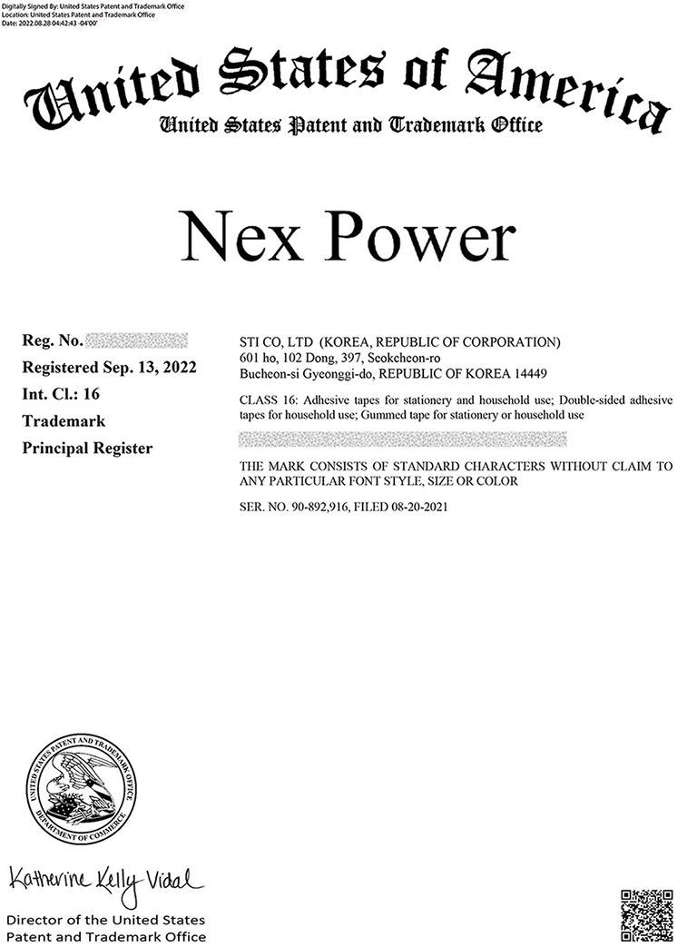 Registramos ¡°Nex Power¡± como marca commercial en Estados Unidos